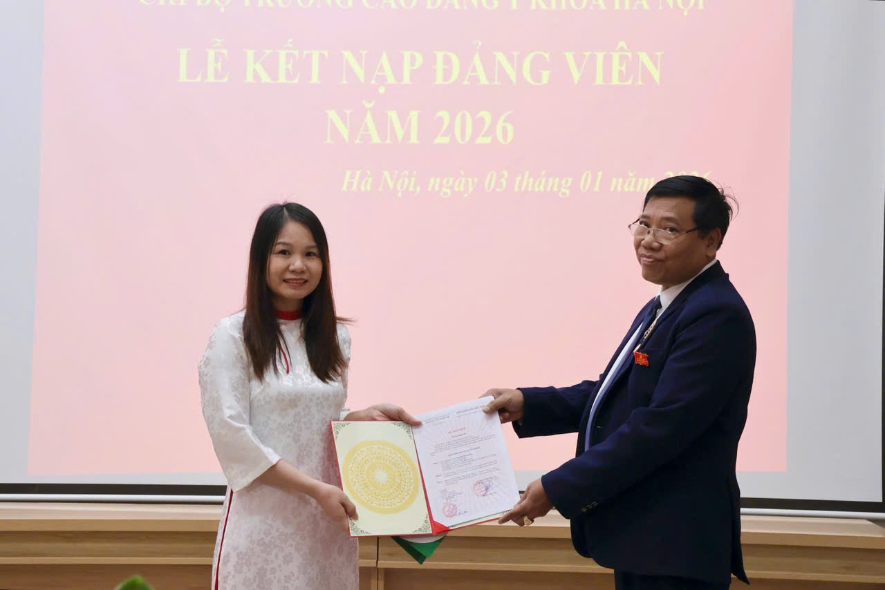 Sáng thứ Bảy, ngày 03/01/2026, Chi bộ Trường Cao đẳng Y Khoa Hà Nội đã long trọng tổ chức Lễ kết nạp Đảng viên mới cho các quần chúng ưu tú là cán bộ, nhân viên nhà trường – những cá nhân đã trải qua quá trình rèn luyện, phấn đấu nghiêm túc, bền bỉ trong học tập, công tác và hoạt động phong trào.
