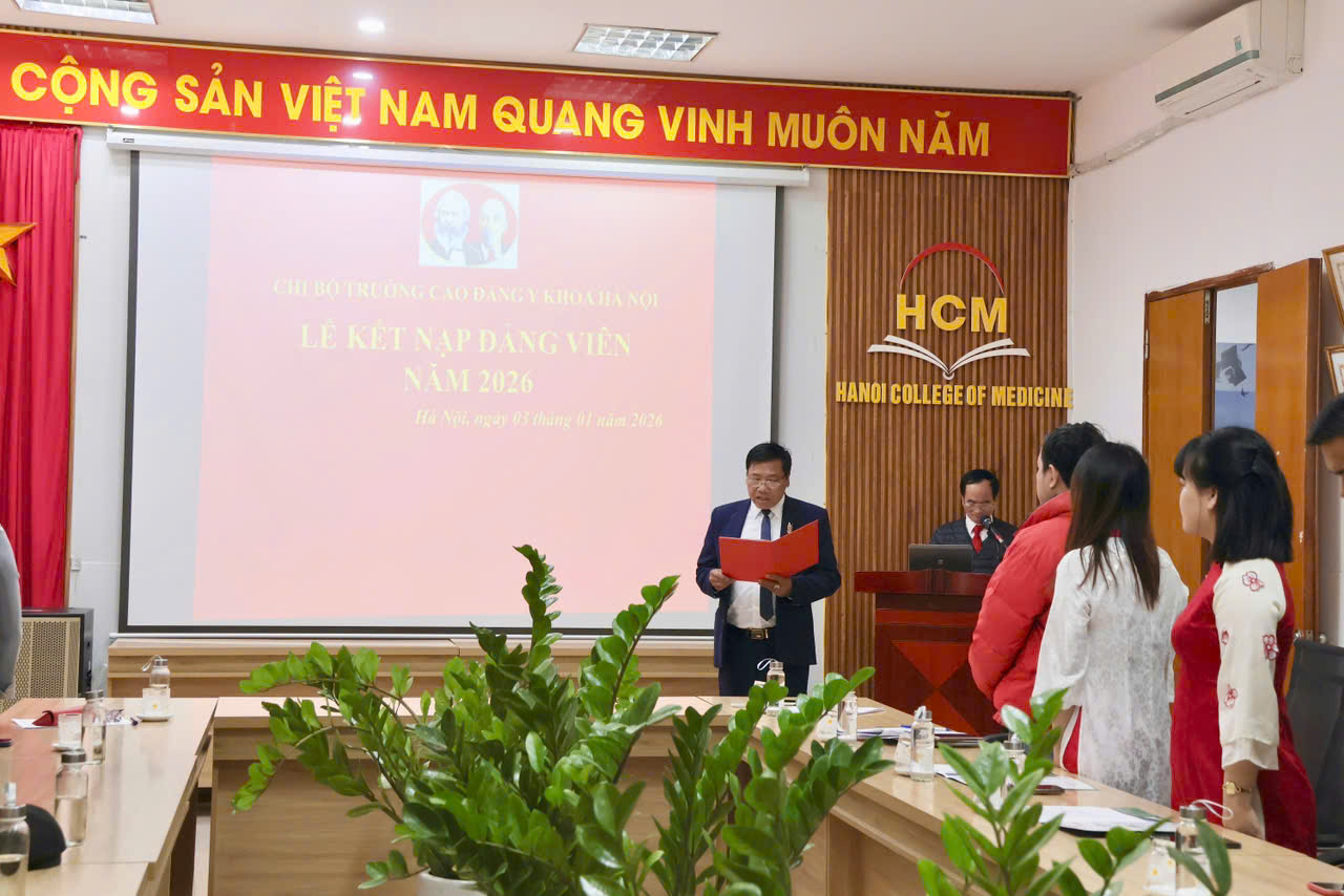 Sáng thứ Bảy, ngày 03/01/2026, Chi bộ Trường Cao đẳng Y Khoa Hà Nội đã long trọng tổ chức Lễ kết nạp Đảng viên mới cho các quần chúng ưu tú là cán bộ, nhân viên nhà trường – những cá nhân đã trải qua quá trình rèn luyện, phấn đấu nghiêm túc, bền bỉ trong học tập, công tác và hoạt động phong trào.