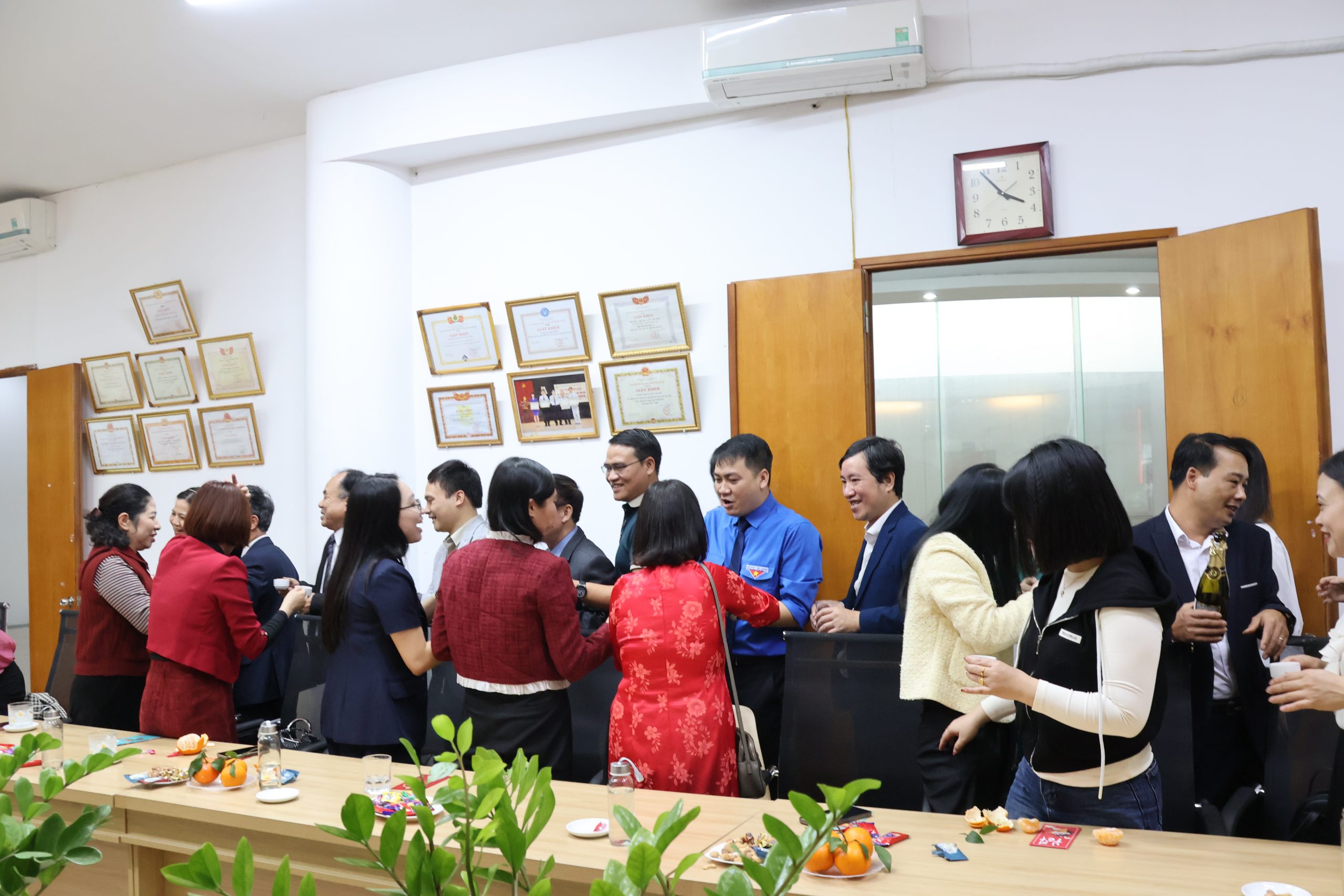 🎊Sau nghi thức dâng hương, tập thể cán bộ, giảng viên, nhân viên đã cùng tham dự buổi gặp mặt đầu xuân tại Hội trường. Tại đây, lãnh đạo Nhà trường gửi lời chúc mừng năm mới, động viên tinh thần làm việc, đồng thời trao những phần quà may mắn đầu năm như lời chúc cho một năm công tác hiệu quả, thành công và đoàn kết.